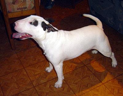 | Plemeno: | miniaturní bulteriér | Barva srsti: | bílá se znakem/znaky, krátká |