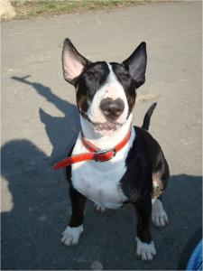 | Plemeno: | bulteriér | Barva srsti: | černá s žíháním, bílé znaky, krátká |