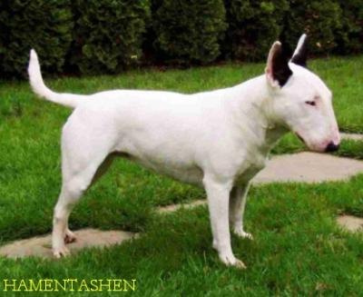 | FRANKOVKA Hamentashen | fena | bulteriér | bílá se znakem/znaky |