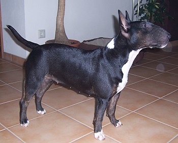 | Plemeno: | miniaturní bulteriér | Barva srsti: | černá s žíháním, bílé znaky, krátká |
