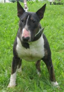 | Plemeno: | bulteriér | Barva srsti: | černá s žíháním, bílé znaky, krátká |