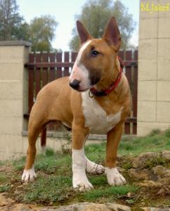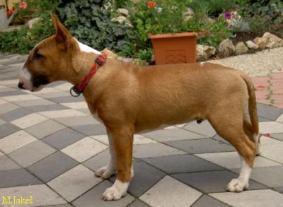| Plemeno: | bulteriér | Barva srsti: | červená, bílé znaky, krátká |