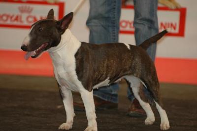 | Plemeno: | miniaturní bulteriér | Barva srsti: | žíhaná, bílé znaky, krátká |