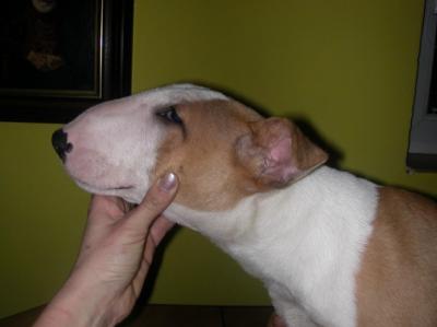 | Plemeno: | bulteriér | Barva srsti: | červená, bílé znaky, krátká |