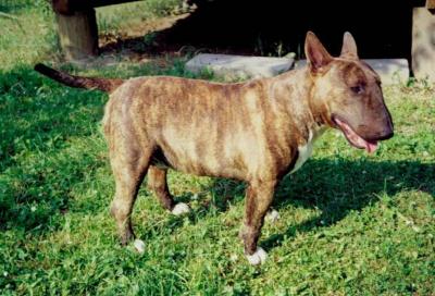 | Plemeno: | bulteriér | Barva srsti: | žíhaná, bílé znaky, krátká |