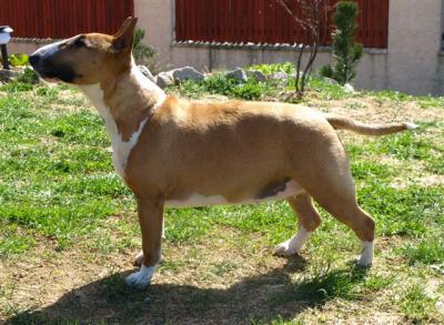 | Plemeno: | bulteriér | Barva srsti: | červená, bílé znaky, krátká |