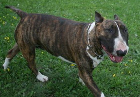 | Plemeno: | bulteriér | Barva srsti: | žíhaná, bílé znaky, krátká |