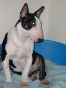 | Plemeno: | bulteriér | Barva srsti: | černá s žíháním, bílé znaky, krátká |